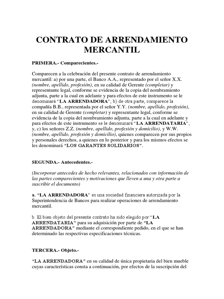 Aquí hay fotos sobre Ejemplo De Contrato De Arrendamiento Mercantil.