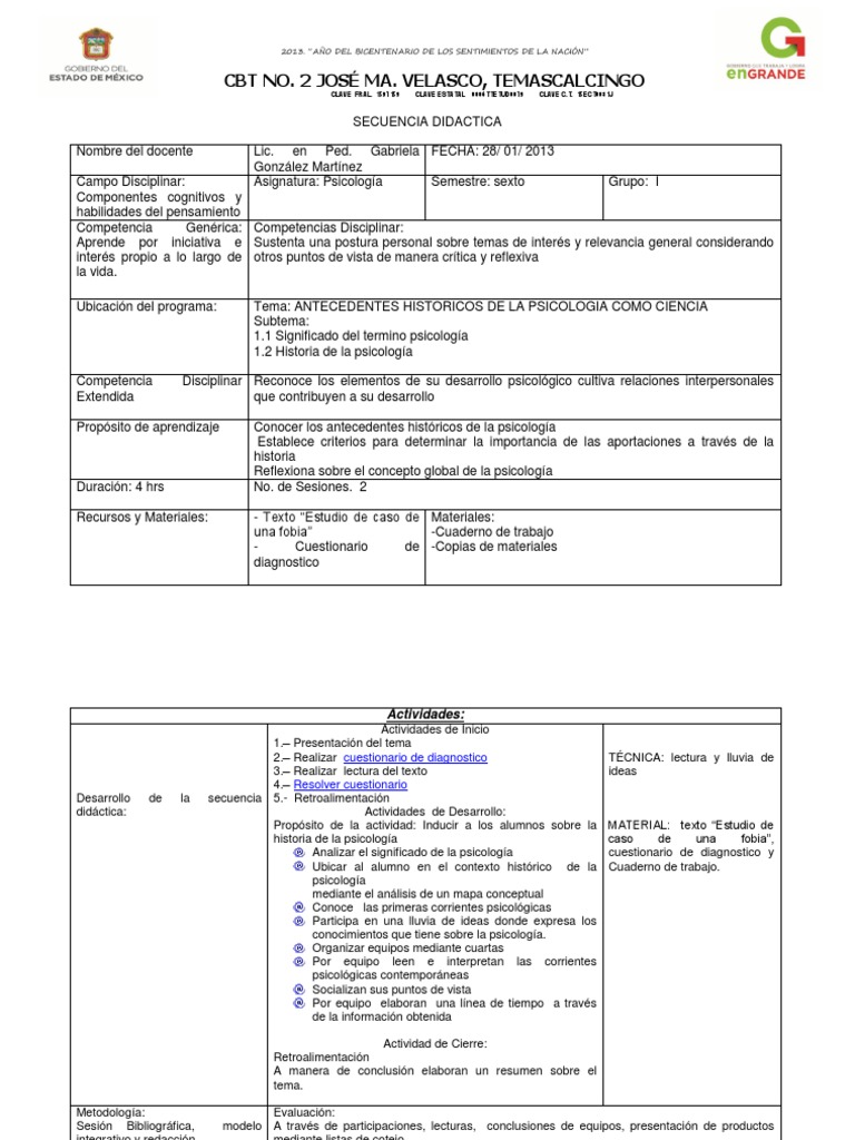 Secuencia Didactica Psicologia Caso De Estudio Lectura Proceso