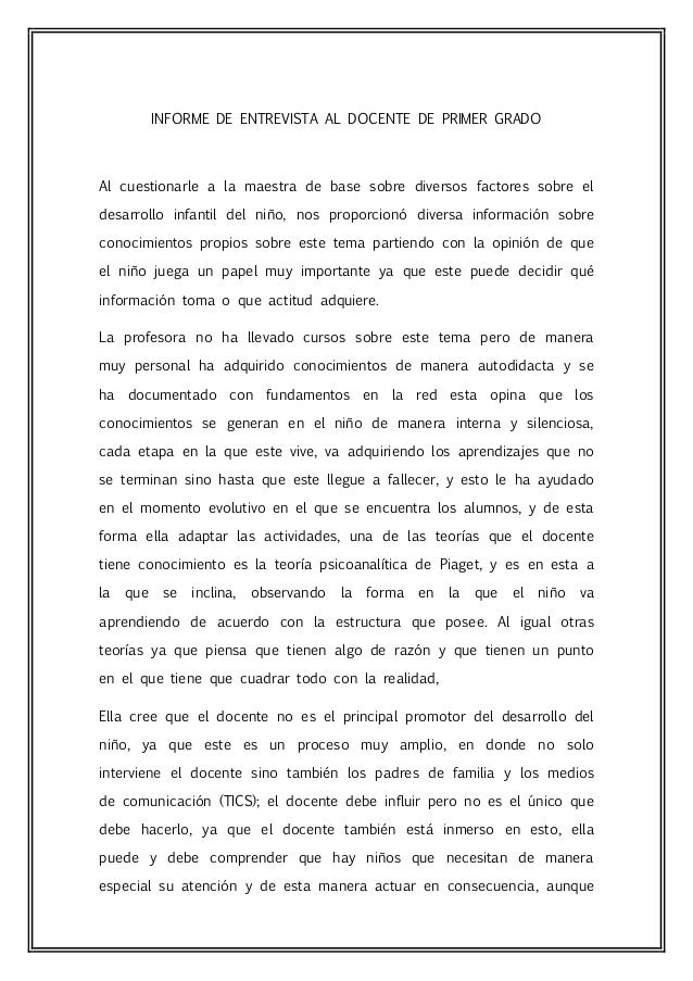 Informe De Entrevista Al Docente De Primer Grado Psicologia
