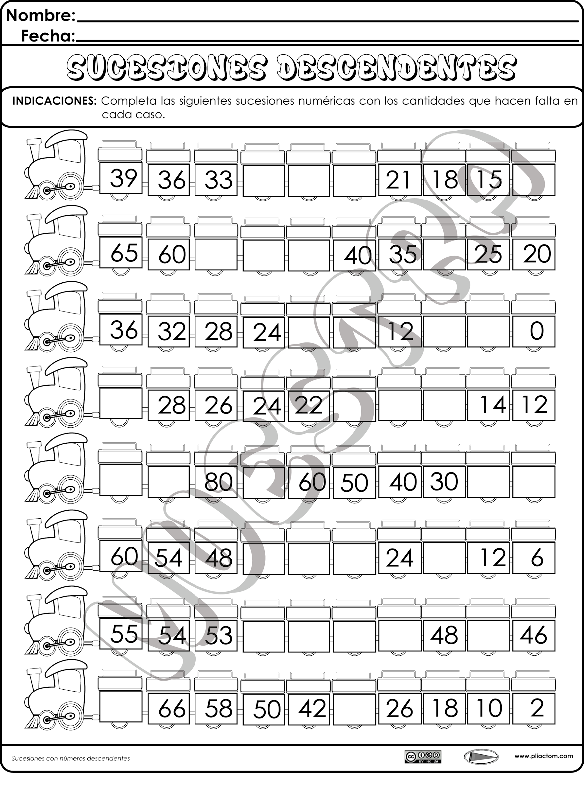 Series Ascendentes Y Descendentes Para Primaria Fichas Para Imprimir