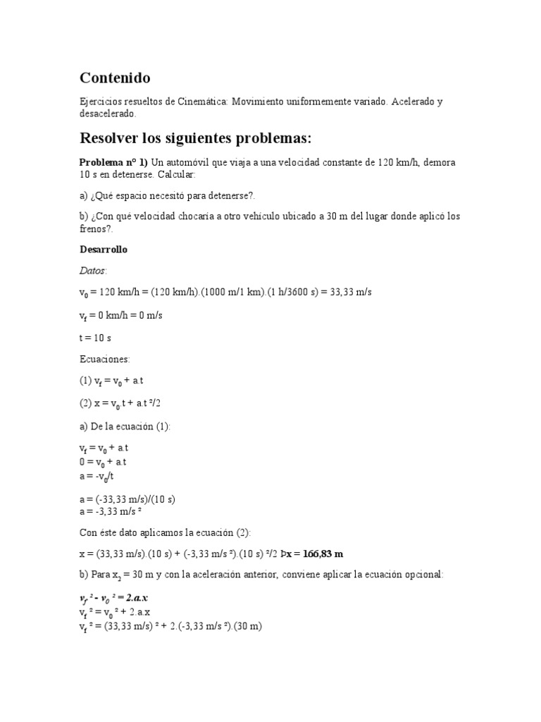 Movimiento Rectilineo Uniformemente Variado Ejercicios Resueltos Pdf