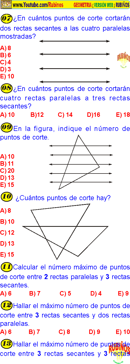 Ejercicios con respuestas de rectas paralelas y rectas secantes.