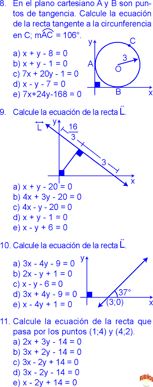 Escribe de todas las formas posibles la ecuación de la recta que pasa por los puntos y.