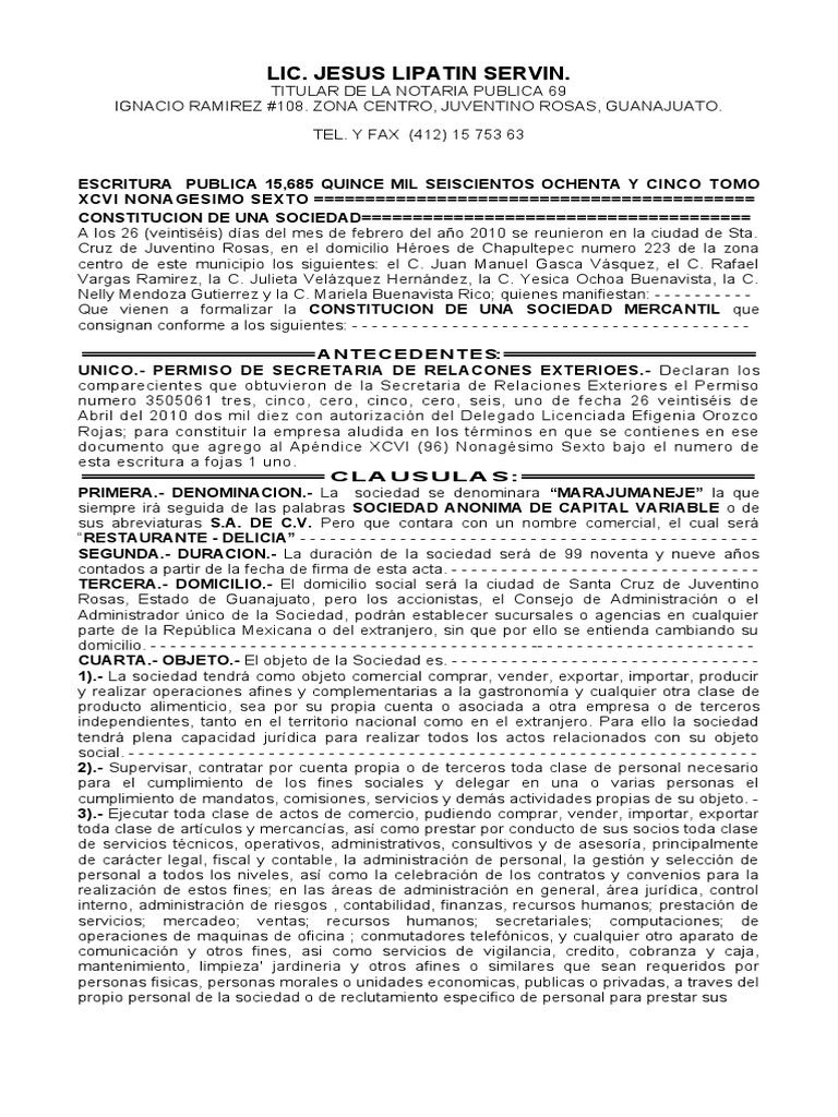 Acta Constitutiva Del Restaurante