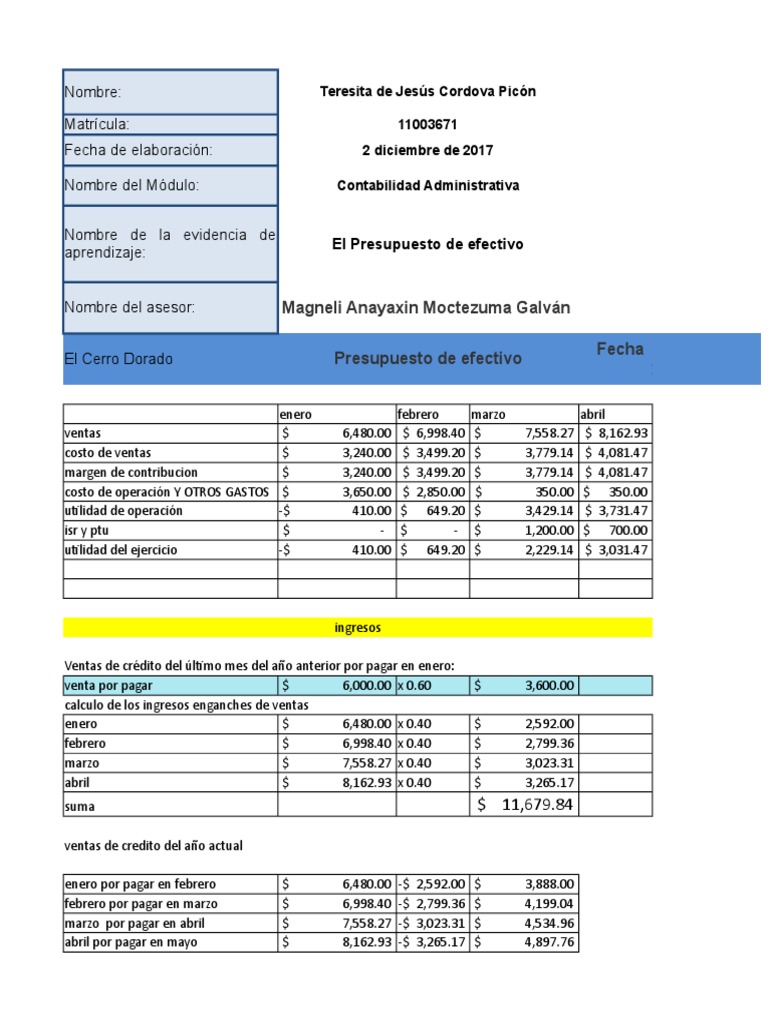 Presupuesto De Caja Y Manejo De Efectivo