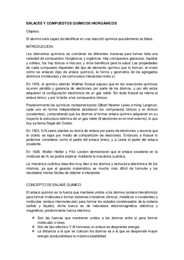 Practicas De Laboratorio Enlaces Y Compuestos Quimicos Inorganicos