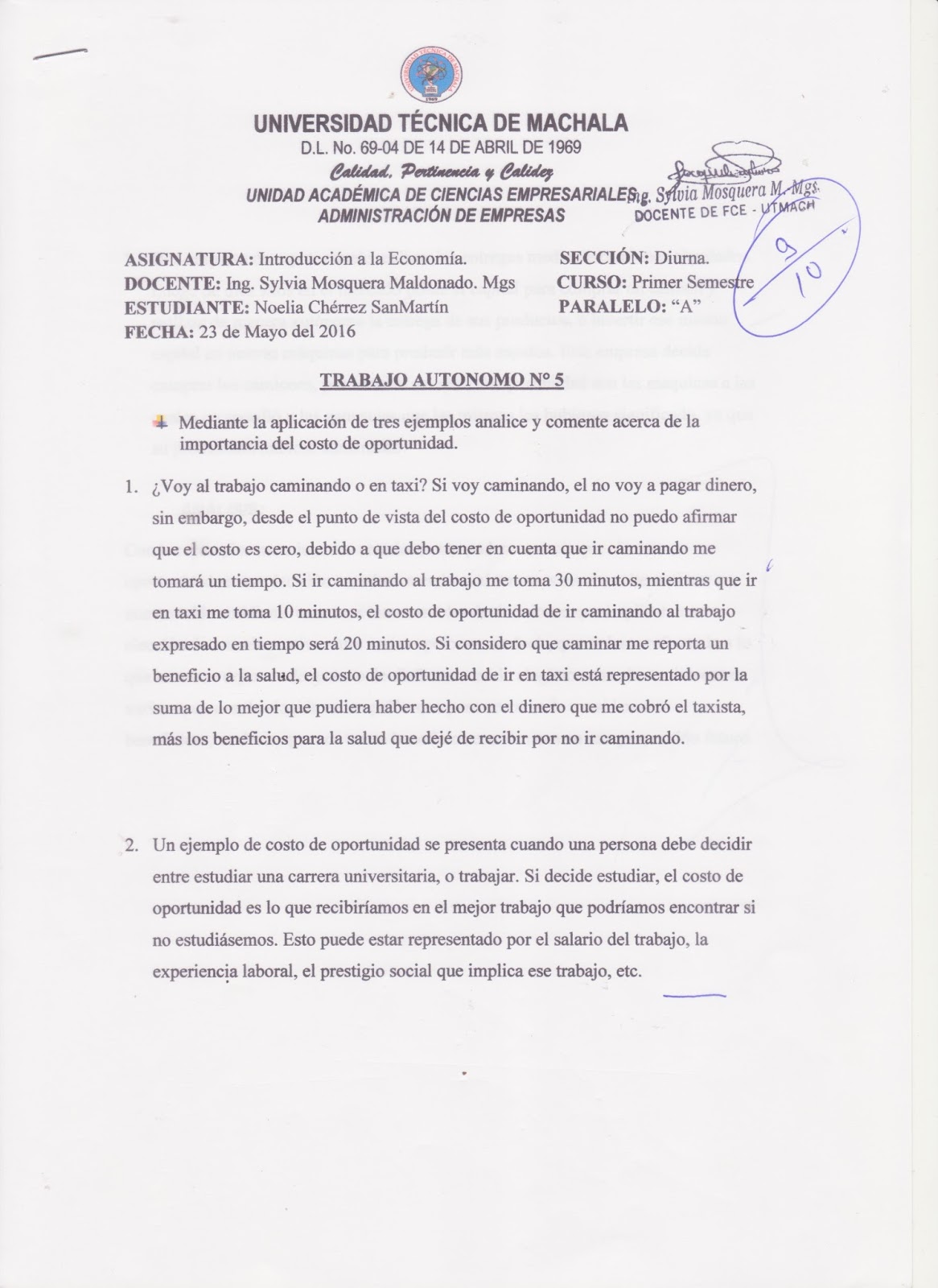 Portafolio De Introduccion A La Economia Trabajo Autonomo N Cinco