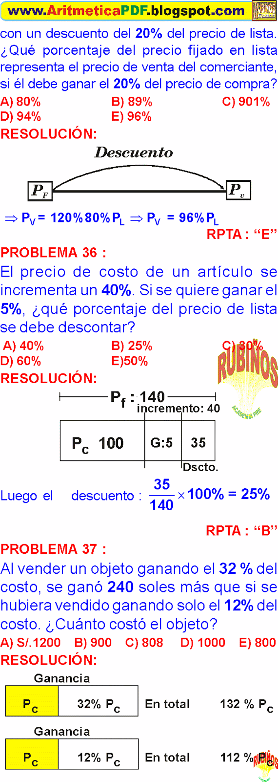 Problemas De Porcentajes De Aumentos Y Descuentos