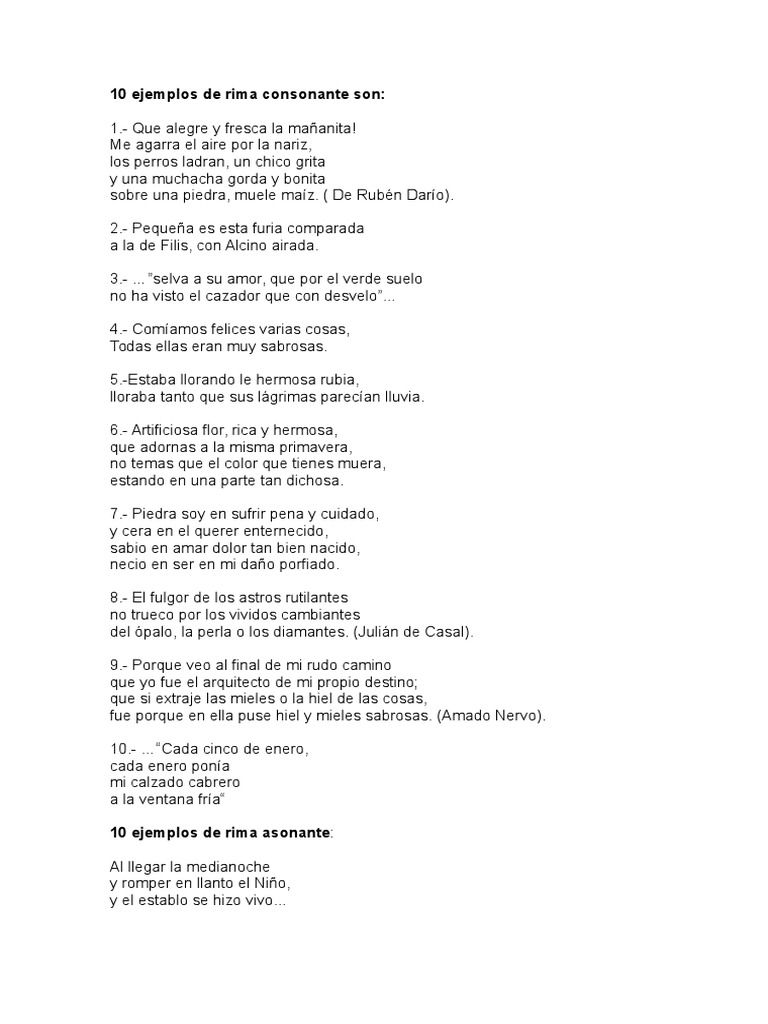 10 Ejemplos De Rima Consonante Son