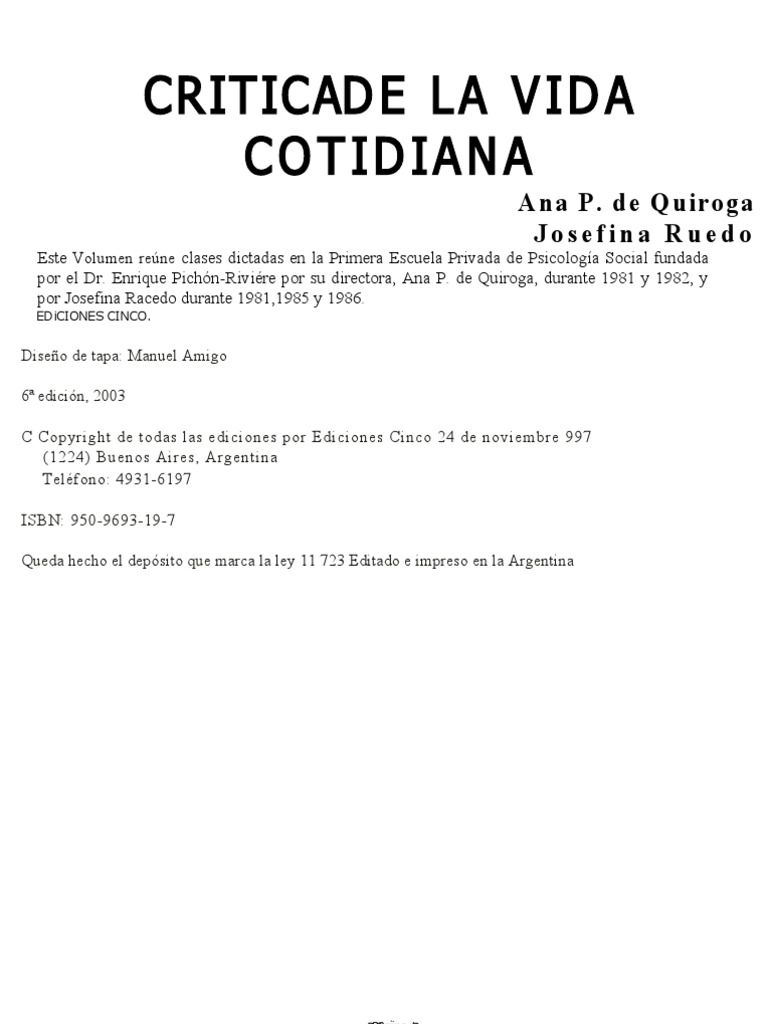 Critica De La Vida Cotidiana Ana Quiroga Josefina Racedo