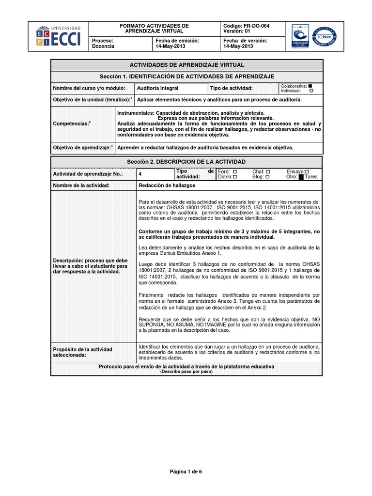 Esa es la información que podemos describir acerca de redaccion de hallazgos de auditoriaejemplos. Gracias por visitar el sitio Nuevo Ejemplo 03 January 2019.