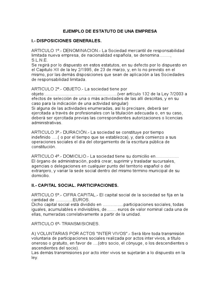 Ejemplo De Estatuto De Una Empresa Liquidacion Compania De
