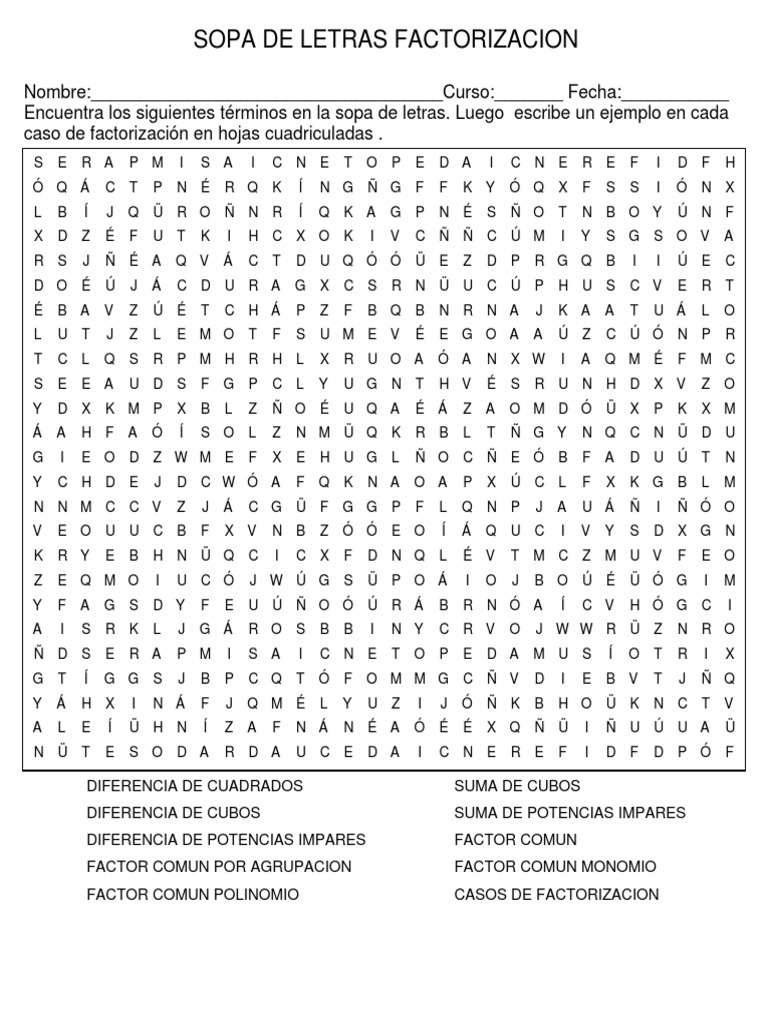 Sopa De Letras Factorizacion Pdf