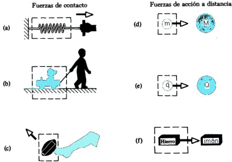 Existen dos tipos de fuerzas las de contacto y las de acción a distancia.