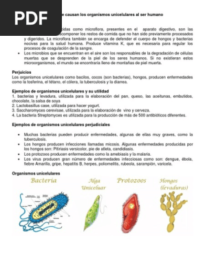 Beneficios Y Perjuicios Que Causan Los Organismos Unicelulares Al