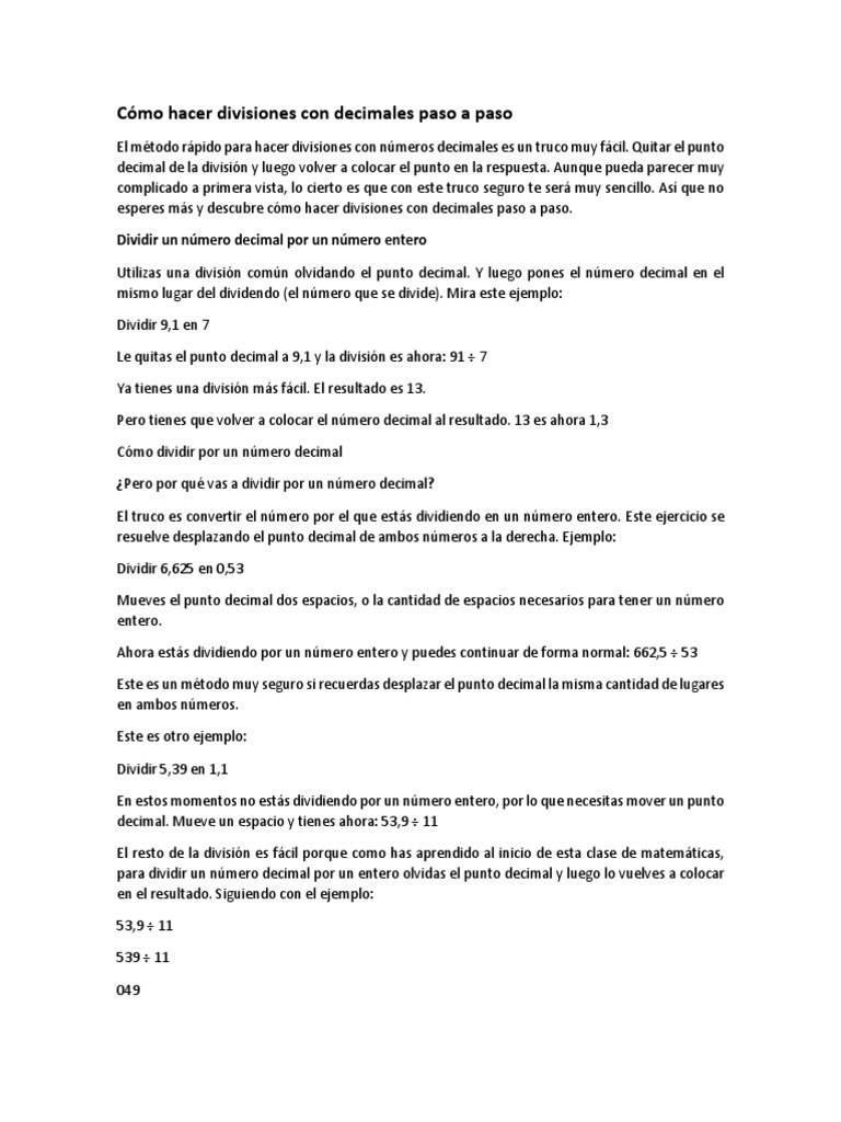 Como Dividir Con Decimales Paso A Paso Ejercicios Resueltos