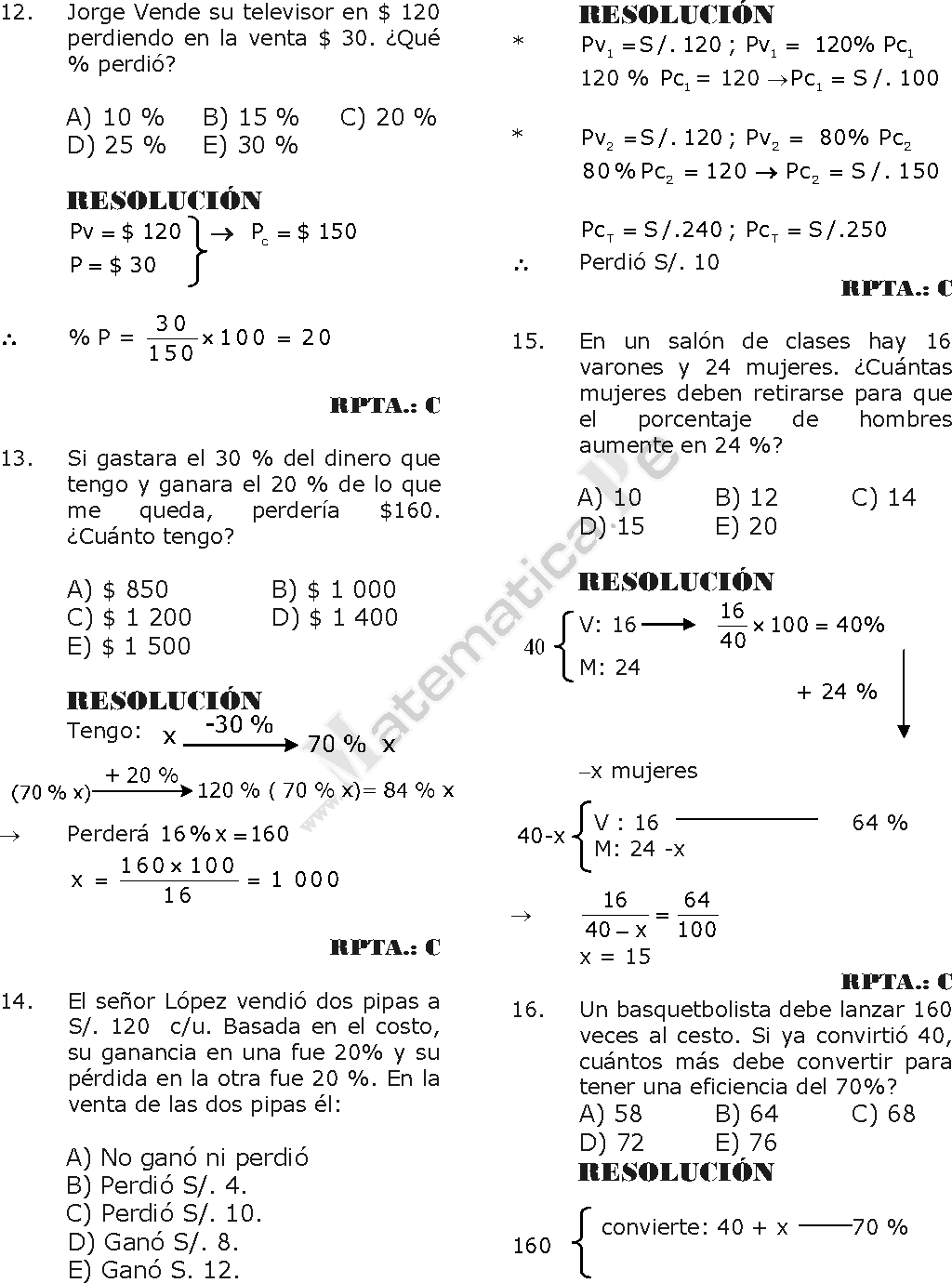 Problemas resueltos de calcular porcentajes.
