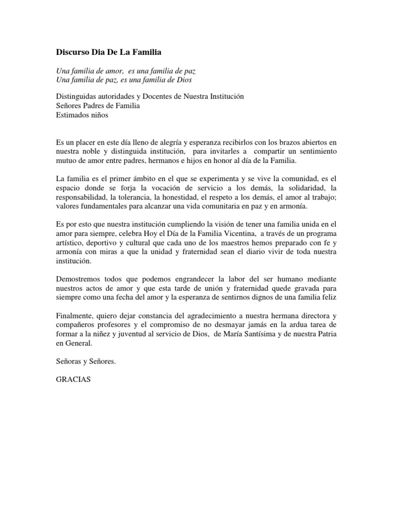 Discurso Dia De La Familia Amor