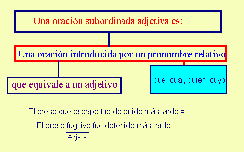 Las oraciones subordinadas adjetivas expresan las características de lo que o quien se habla en la oración principal el cual se llama antecedente.