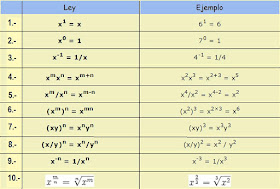 Ejemplos las leyes de los exponentes explican lo anteriormente señalado.