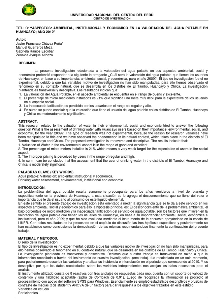 Formato De Articulo Cientifico Universidad Nacional Del Centro Del