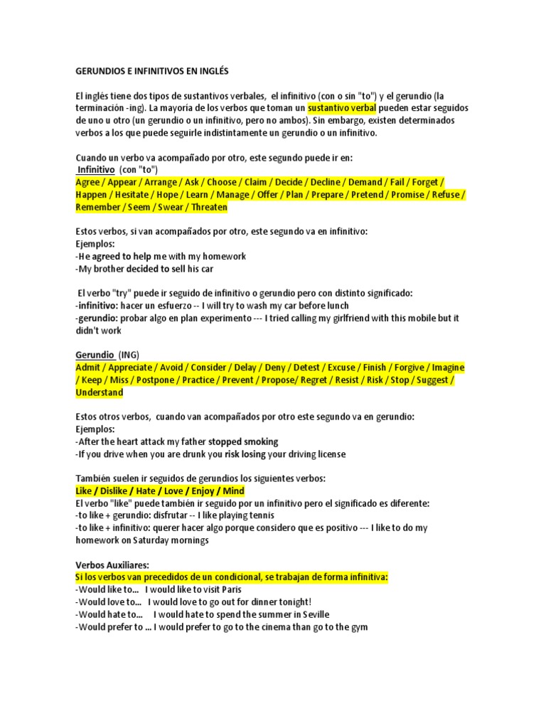 Gerundios E Infinitivos En Ingles Pdf Conjugacion Gramatical