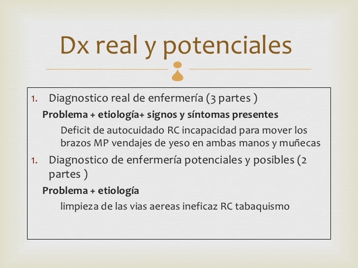Ejemplos de diagnosticos de enfermeria reales y potenciales.