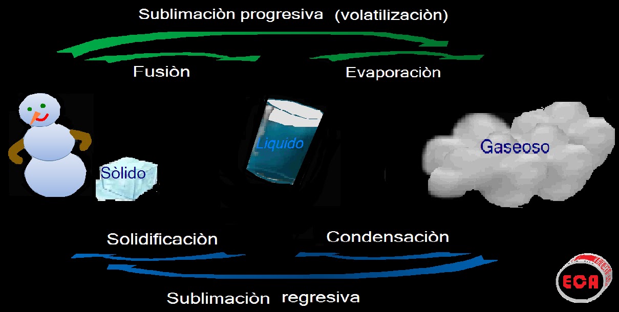 Una cuestión muy interesante de los estados de agregación de la materia es que existe la posibilidad que se pase de cualquiera de los tres estados a cualquier.