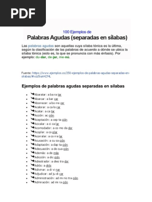 23 Ejemplos Palabras Agudas Separadas Silabas