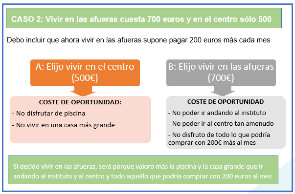 Otro ejemplo de coste de oportunidad es al que se enfrenta un estudiante la hora de escoger si estudiar o trabajar.