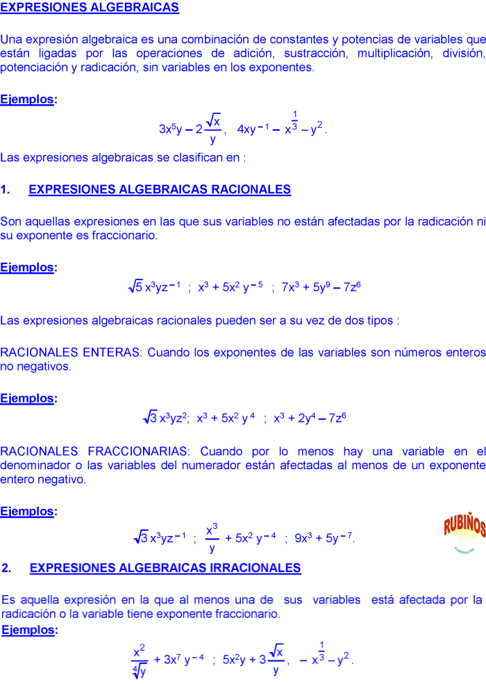 Datos sobre Que Son Expresiones Algebraicas Y Ejemplos.