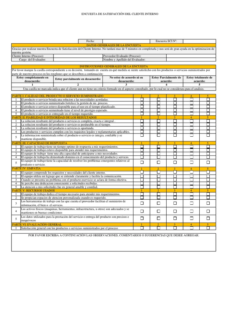Modelo De Encuesta De Satisfaccion De Cliente Interno La