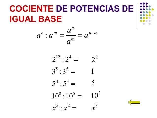 Que Es Cociente De Potencias De Igual Base Brainly Lat