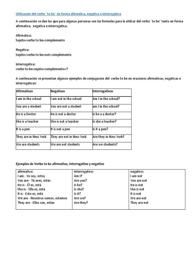 Revisamos sobre Ejemplos De Oraciones Con El Verbo To Be Afirmativas Negativas E Interrogativas.