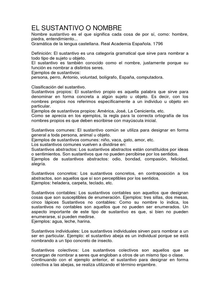 El Sustantivo Gramatica Lengua Espanola De Aplicaciones