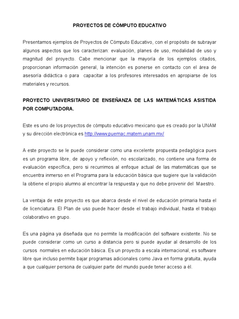 Ejemplos De Proyectos De Computo Educativo Maestros Evaluacion