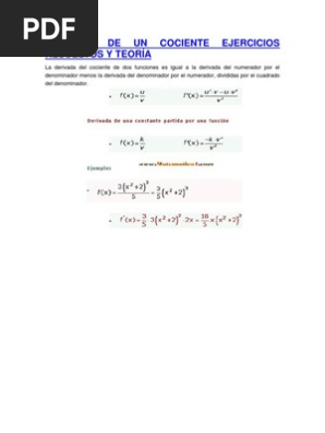 Derivada De Un Cociente Ejercicios Resueltos Y Teoria Derivado