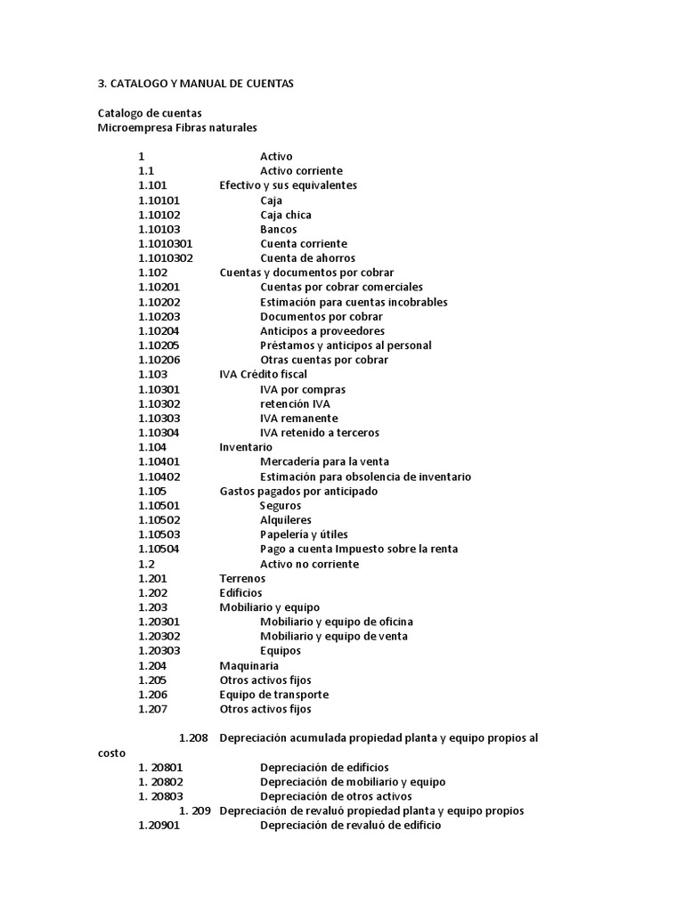 Ejemplo De Un Catalogo De Cuentas De Una Empresa Industrial