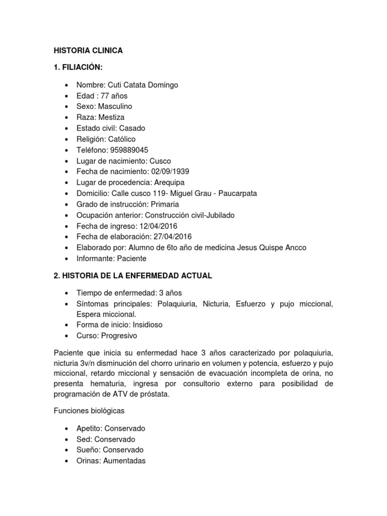 Historia Clinica Urologia Docx Especialidades Medicas Medicina