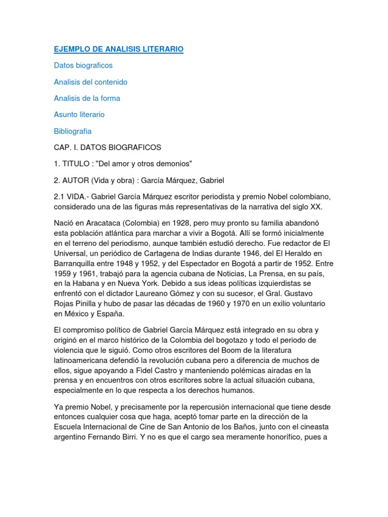 Ejemplo De Analisis Literario Gabriel Garcia Marquez Novelas