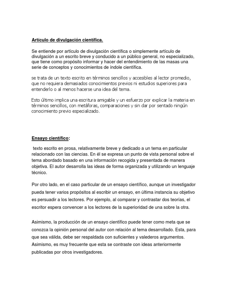 Divulgacion Ensayo Y Resumen Ensayos Sumario Abstracto