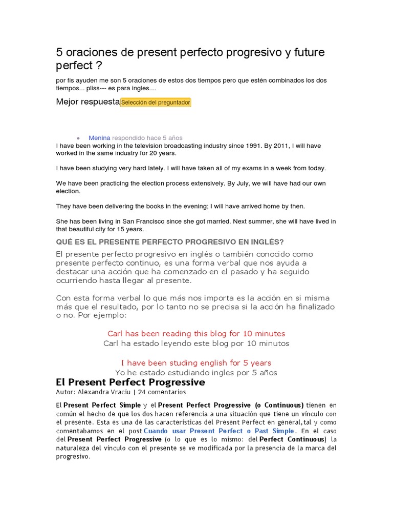 5 Oraciones De Present Perfecto Progresivo Y Future Perfect Musica