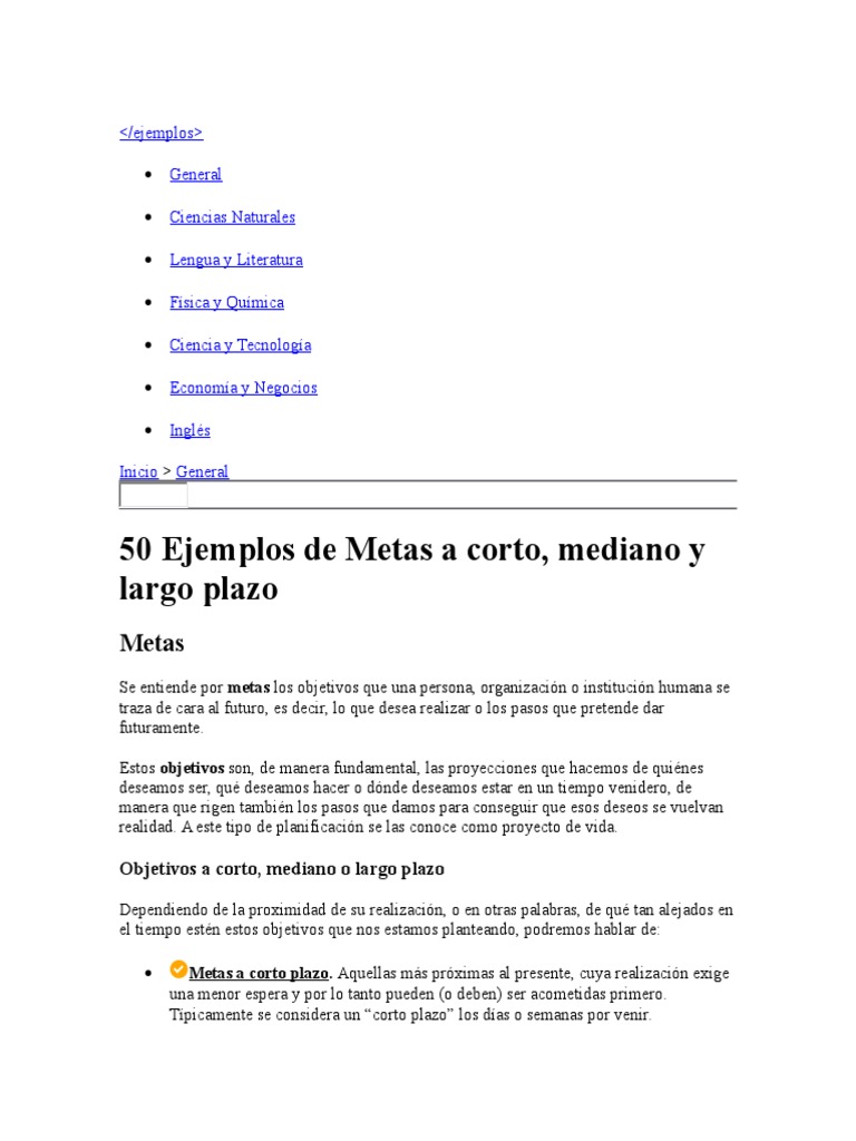 Metas A Corto Mediano Y Largo Plazo Ejemplos Coleccion De Ejemplo