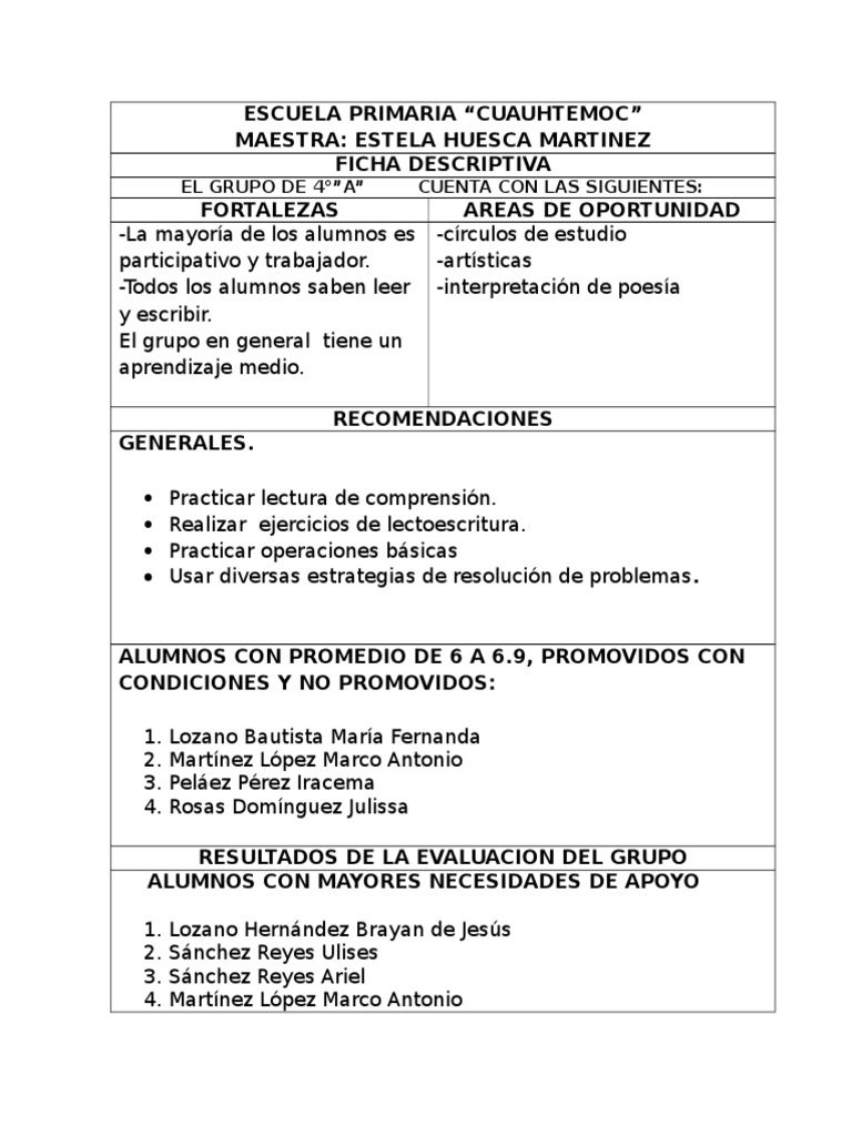 Presentamos información relevante Primaria Ejemplo De Ficha Descriptiva Por Alumno.