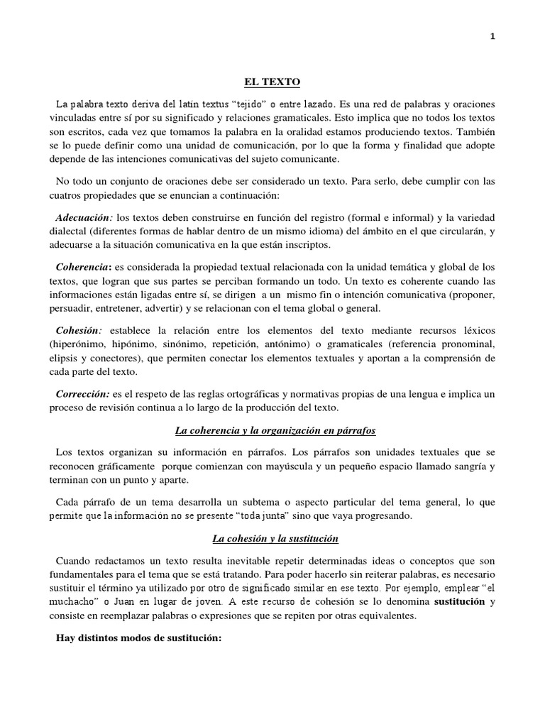 El Texto Coherencia Cohesion Adecuacion Docx Palabra Lengua