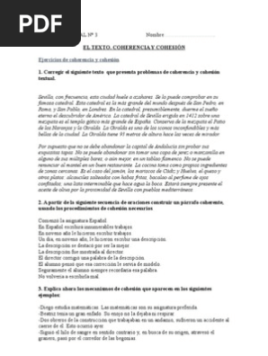 Ejercicios De Coherencia Y Cohesion Para Parcial Sevilla
