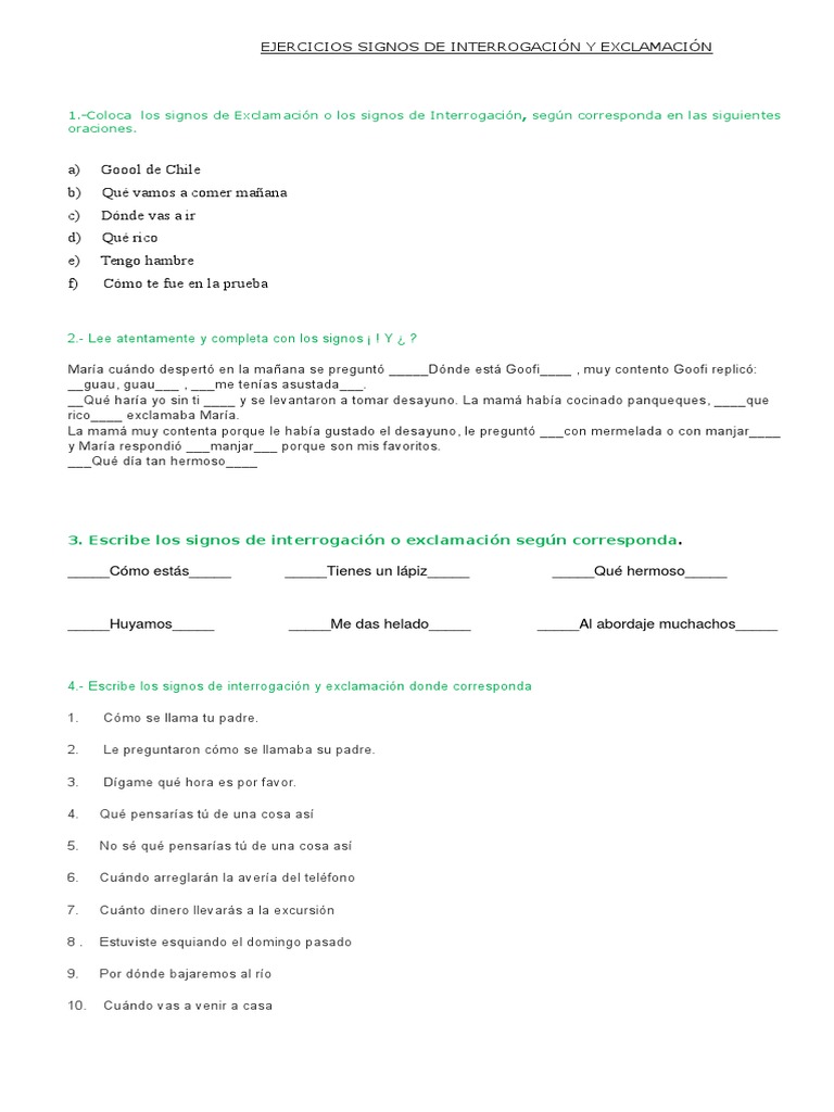 Ejercicios Signos De Interrogacion Y Exclamacion