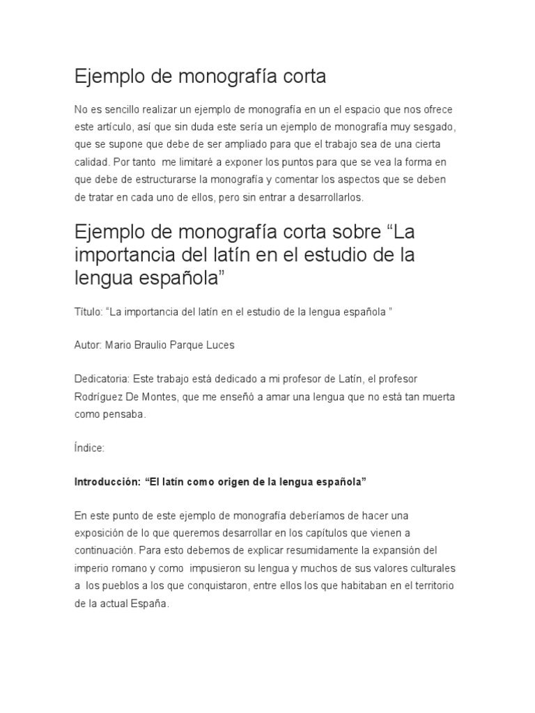 Hacer Monografia Corta Latin Lengua Espanola Prueba Gratuita