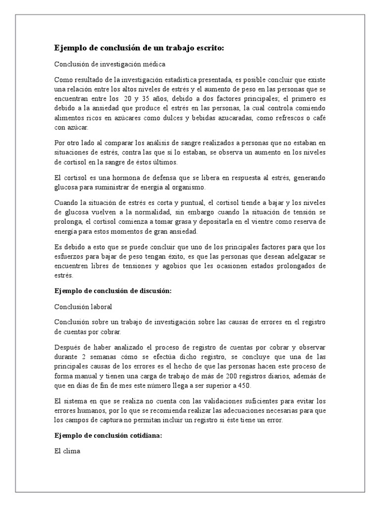 Ejemplo De Conclusion De Un Trabajo Escrito Cortisol Estres