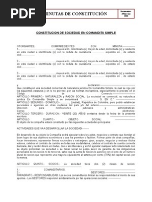 Estatutos Para Una Sociedad En Comandita Simple